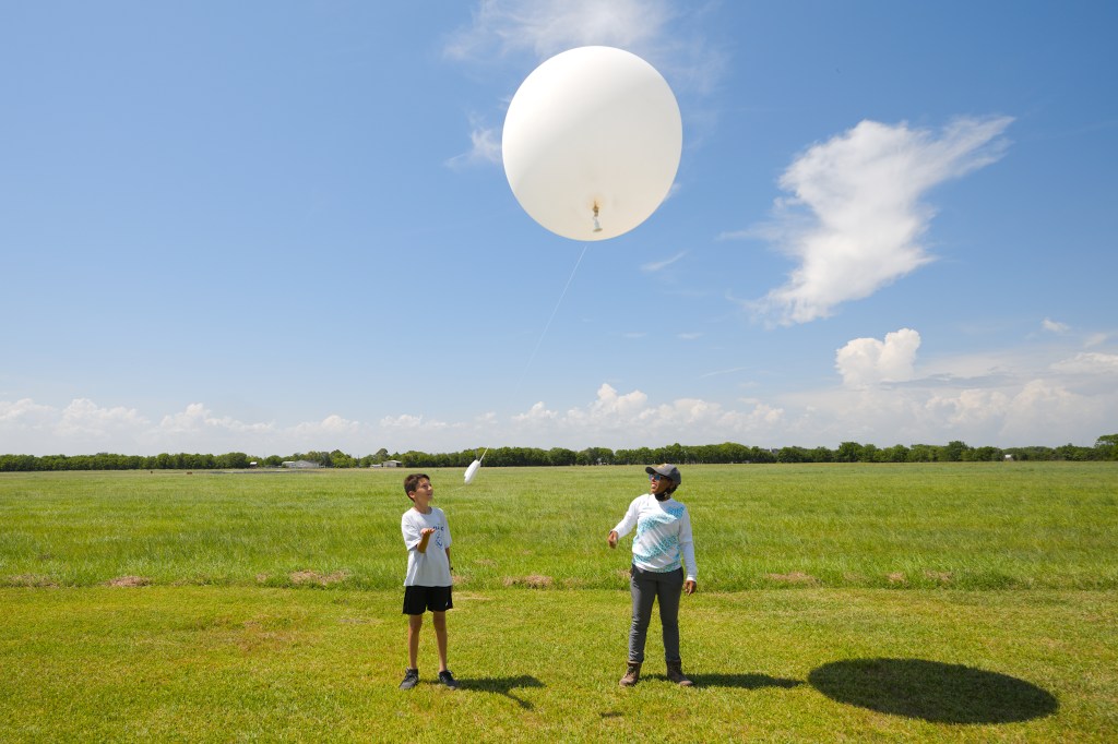 Mark launching a balloon with a weather station on it to understand the air that fuels those big clouds.