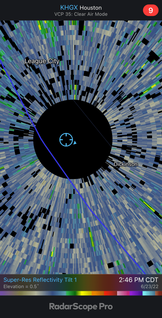 Of course normal ARM operations still means unprecedented frequency and fidelity of observations Right when the forecast call ended the whole Kemah area experienced a power outage. A quick pack and I went mobile again finding a local pub with blazing fast internet. There I took another ARM call, this one on the use of AI on camera systems. It was actually (lucky!) I went mobile as on the way back from League City I was treated to a show of a developing big cloud that go so big it hit the top of the atmosphere and formed what we call an anvil for that classical thunderstorm shape. I was so happy that we were launching soundings and our friends from TAMU, OU, TTU, Stonybrook and other collaborators were out there with mobile radars and other platforms measuring that storm right over Houston! Lucky indeed.